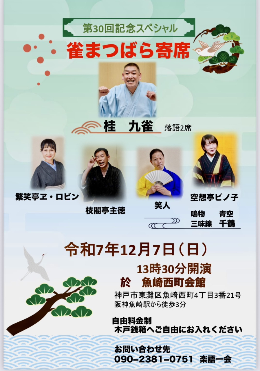 1年ぶりの高座へ—12月7日は『雀まつばら寄席』🐦
